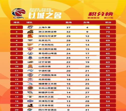 中國籃球數據庫CBA 聯賽:《2025-2026賽季CBA聯賽常規賽第41輪綜述》2026年4月21日
