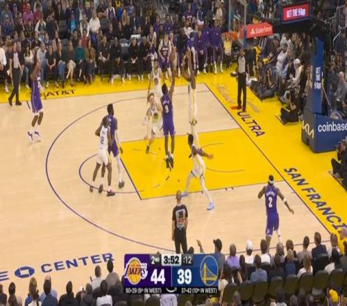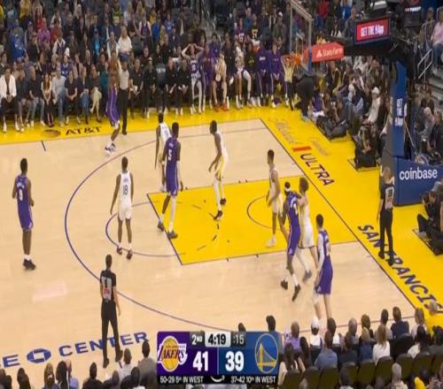 ——第二節剩下4分鐘前,布朗尼又連拿4分1助攻,不到一分鐘時間,幫助湖人將比分從41-39改寫成48-39