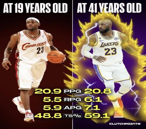 這組對比站得住腳的前提,在于他身邊的隊友環境確實和19歲時不一樣了。這支湖人現在的核心配置包括東契奇、詹姆斯,再加上里夫斯、艾頓、斯馬特等輪換球員,持球、終結和外線牽制都有人幫忙分擔。正因為這樣,41歲的詹姆斯不必像早年那樣從頭到尾一個人大包大攬,而是可以把體能全部留給最關鍵的回合。得分能維持住,助攻還能漲到7次以上,原因很直接:一是自己主動升級了打法,二是陣容允許他把精力放在最重要的環節上。真正厲害的,不是他41歲還能拿20分,而是他用技術、經驗和對比賽的理解,填補了年齡帶來的體能流失。