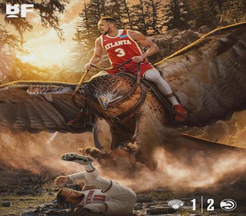 老鷹連續兩場1分險勝,總比分2-1領先。對尼克斯來說,成也布倫森,敗也布倫森。末節最后1分鐘,布倫森2+1打成幫助尼克斯領先3分。杰倫-約翰遜自投自搶追到1分,最后16秒布倫森跳投三不沾,最后12.5秒麥科勒姆跳投反超!
