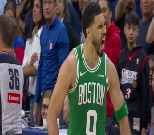 今天,兩隊依然戰至最后,塔圖姆在45度角單挑三分,殺死比賽。命中此球后,塔圖姆興奮地捶胸慶祝。凱爾特人客場以8分優勢帶走勝利。