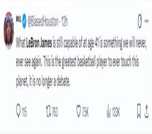 休媒Will都被詹姆斯打服了,他寫道:41歲的勒布朗在這個(gè)年紀(jì)依舊能展示非凡的水準(zhǔn),這是我們未來再也無法看到的了,他就是這個(gè)星球上最偉大的籃球運(yùn)動員,這一點(diǎn)毋庸置疑。