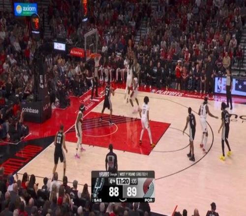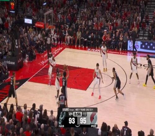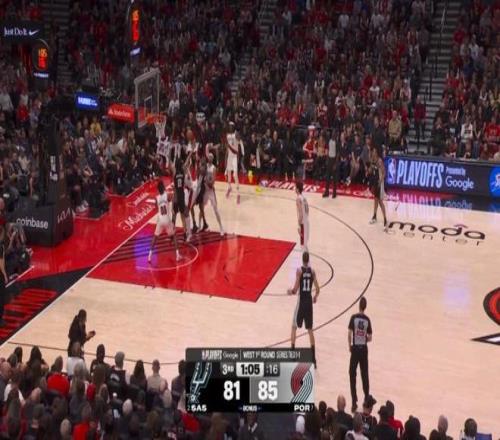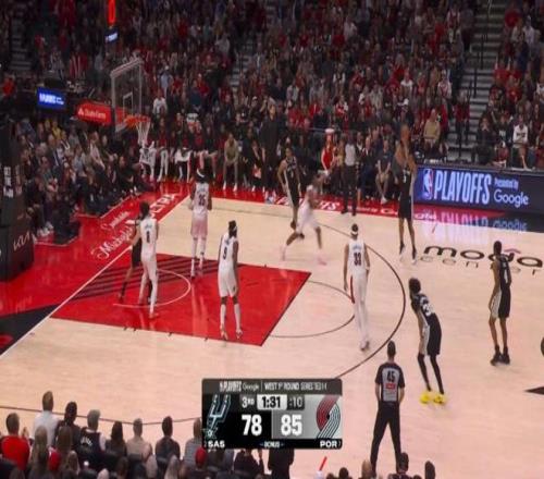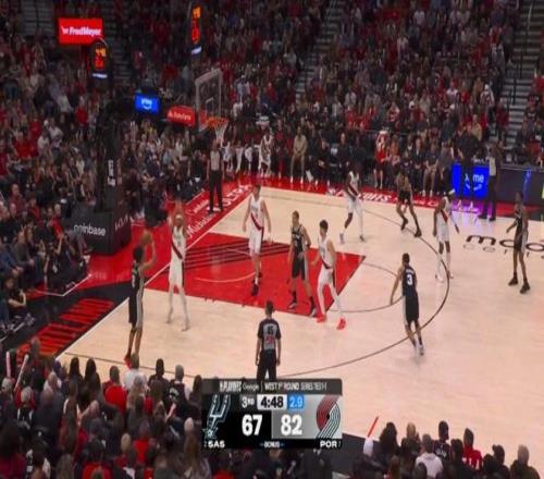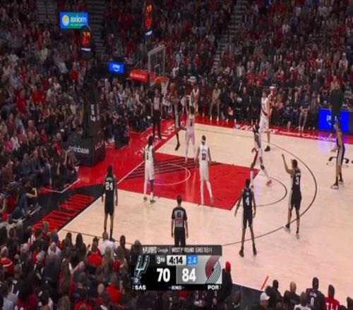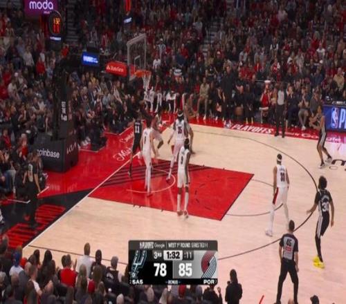第三節剩下7分鐘前,馬刺一度64-77落后開拓者,然后哈珀被派上場,并且改變了場上局勢: